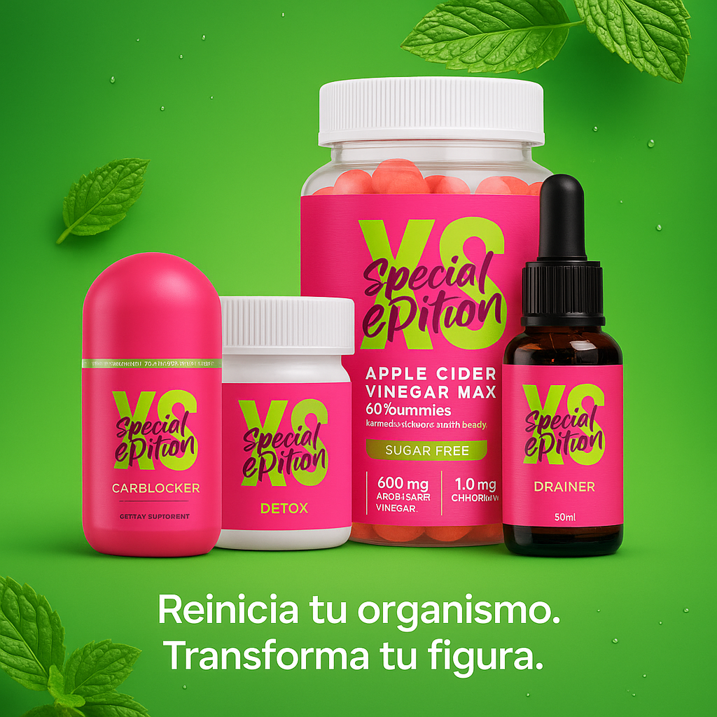 🔥 Quema → 💦 Drena → 🌿 Detox → 🍬 Control de carbohidratos.